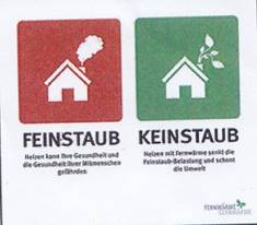 Die blickfangartige Hervorhebung des Gegensatzpaares „FEINSTAUB“ und „KEINSTAUB“ legt das Verständnis der angesprochenen Leser nahe, Heizen mit Fernwärme führe zu überhaupt keiner Feinstaubbelastung. Selbst wenn man diese Werbeaussage nicht wörtlich nimmt, deutet sie jedoch zumindest darauf hin, dass die von Fernwärmeheizungen bewirkte Feinstaubbelastung jedenfalls vergleichsweise sehr gering bzw überhaupt die geringst Mögliche sei. Die beanstandete Werbung lässt sich in keiner Weise dahin verstehen, dass sie lediglich auf großtechnische Fernwärmeerzeugung in Ballungsräumen abstellt. Im Gegenteil: Das kleine symbolische Häuschen lässt eher an Einfamilienhäuser als an große Wohnhausanlagen oder ähnliche Gebäudekomplexe denken.