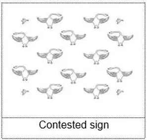 Das Zeichen besteht aus zwölf stilisierten Darstellungen von Gänsen, die spezifisch in ihrer Form sind, alle klar erkennbar und zusätzlich durch ihre organisierte Anordnung eine besondere Note erhalten. Daher hielt die Beschwerdekammer fest, dass das angefochtene Zeichen als mehr als einfache Dekoration auf den fraglichen Waren wahrgenommen würde.